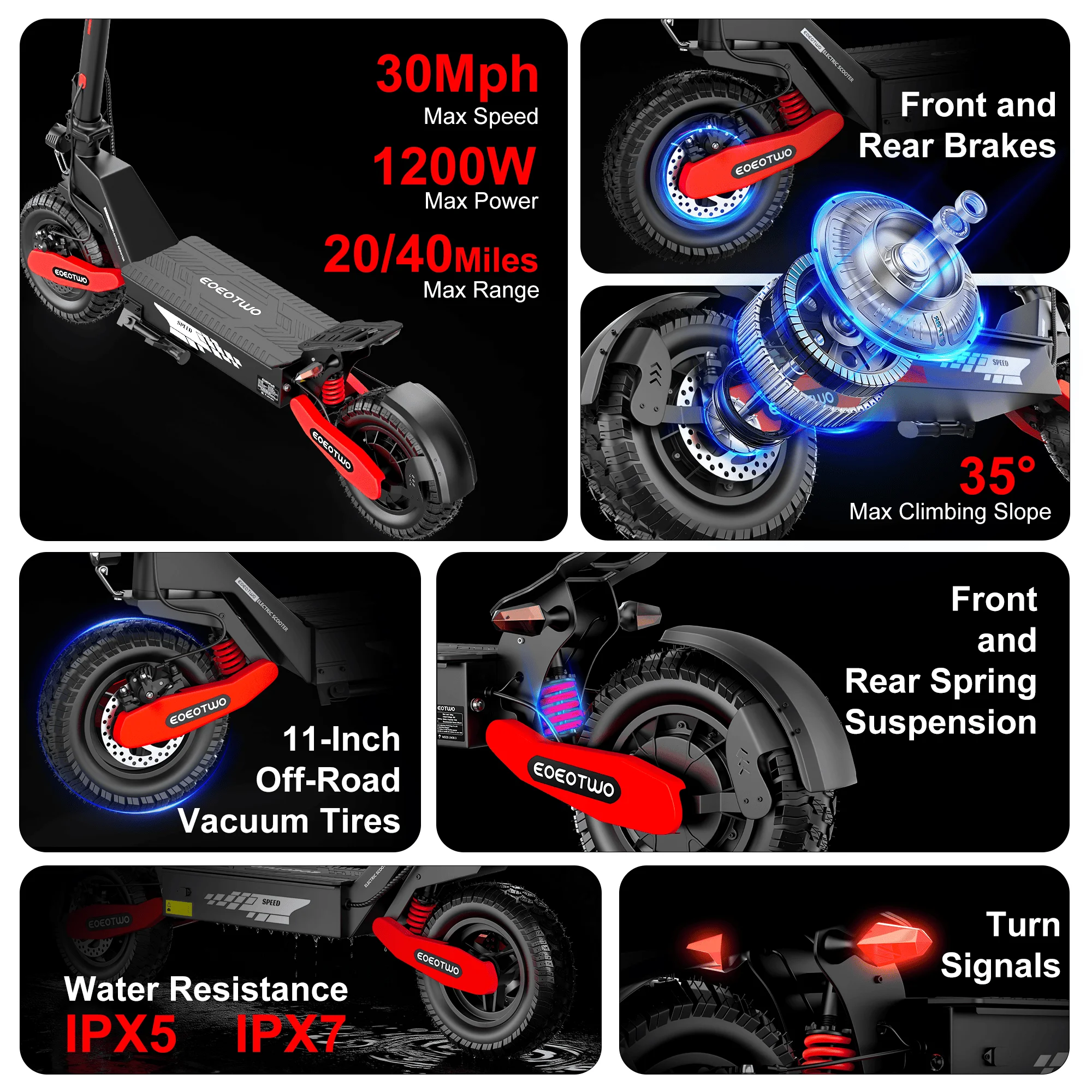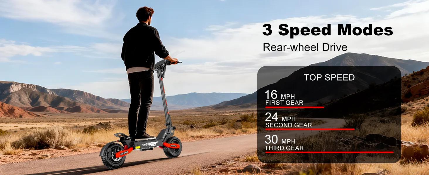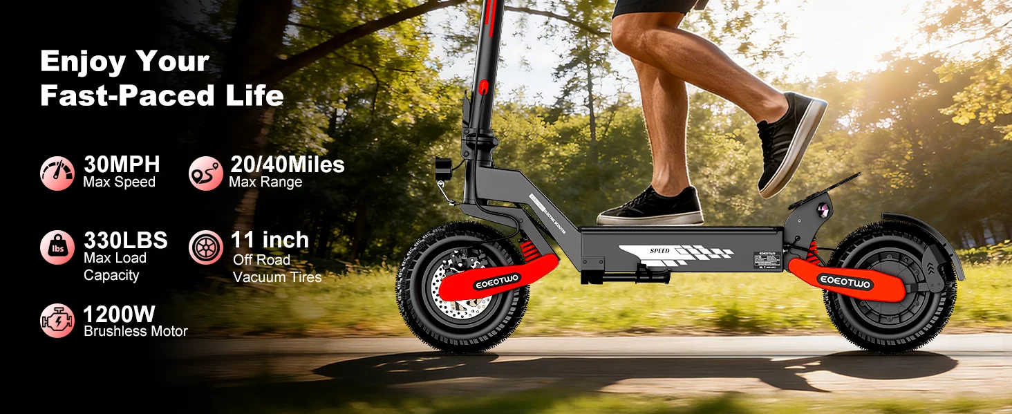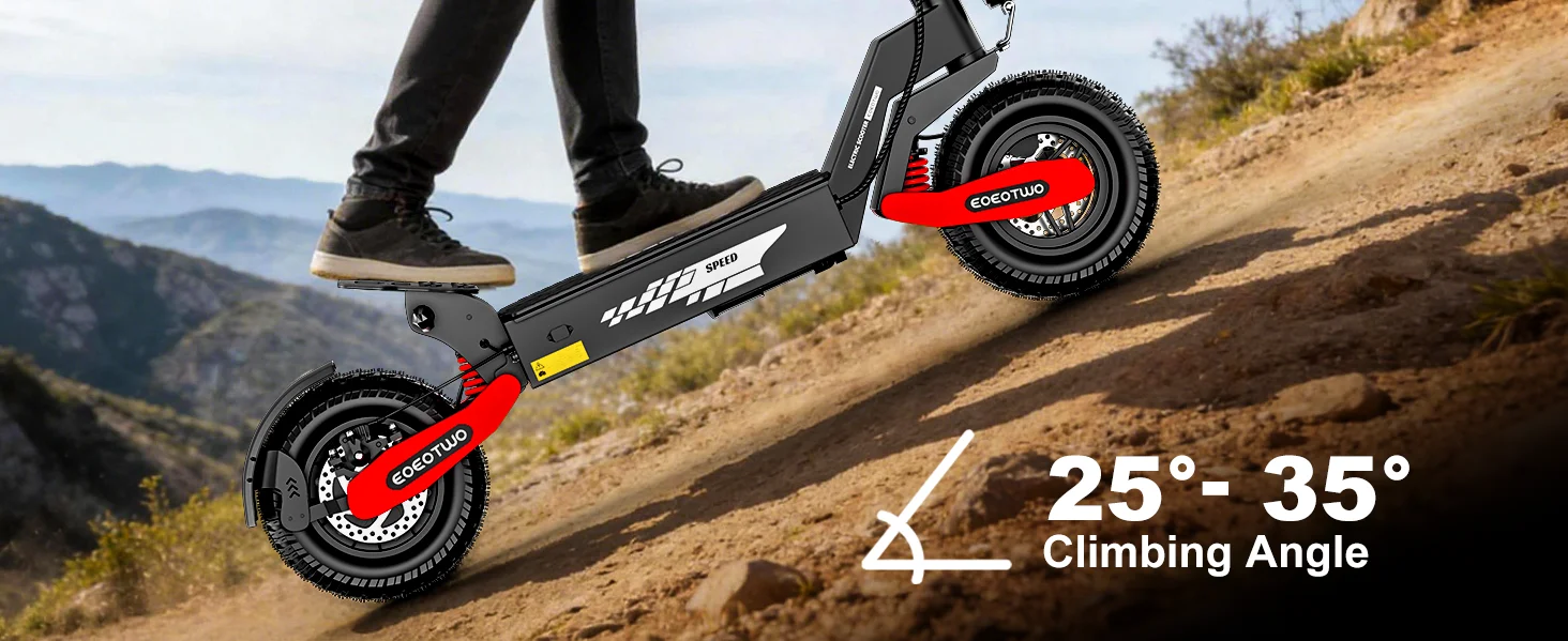 1200W single-drive motor with 25-35° climbing angle — Delivers powerful off-road traction and exceptional climbing capability, effortlessly tackling rugged trails and steep inclines to meet professional-grade off-road riding demands.