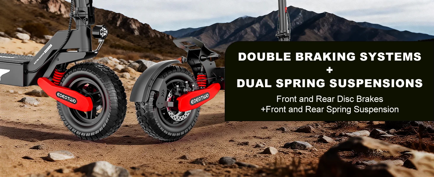 Key-lock anti-theft system with dual front/rear disc brake — Delivers simple, reliable physical theft protection paired with efficient braking for secure outdoor parking and stable handling on rough terrain.