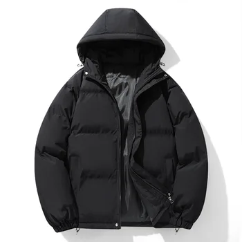 Korean Style New Fashion Winter Men’s Solid Color Simple Basic Casual Trendy Loose Hooded Plus Size Quilted Jackets Male Coats