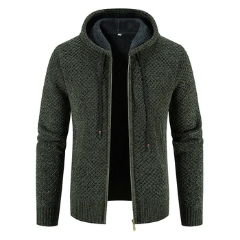 Fleece Cardigan Men’s Winter Jacket Male Sweater Thick Clothing New Korean Windbreaker Y2K Brown Jackets Slim Fit Hooded Coat
